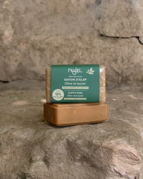Aleppotvål för ansikte, kropp och hår med 12% lagerbärsolja, rekommenderad för normal till kombinerad hud. Denna tvål framställs genom en varm förtvålningsprocess av olivolja och lagerbärsolja. Tar hand om huden med en kombination av närande olivolja och revitaliserade lagerbärsolja.