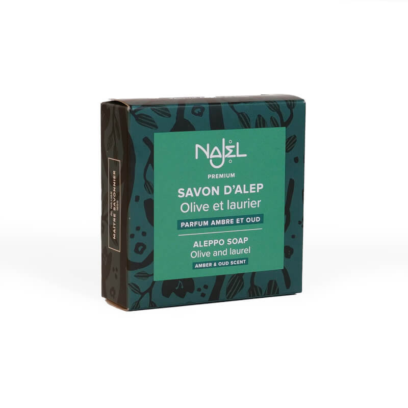 Aleppotvål för ansikte, kropp och hår för alla hudtyper. Denna tvål kombinerar uråldrig Syrisk metod i tillverkningen av Aleppotvål med den berusande doften av amber och oud.