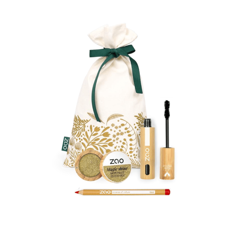 - Green Ribbon Pouch – en chic necessär för dina makeup-essentials.Magic Shine Balm 292 Gold – skimrande glow med biologiskt nedbrytbart glitter.